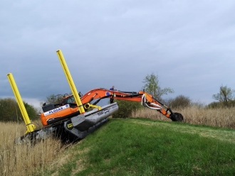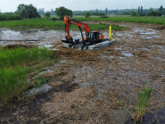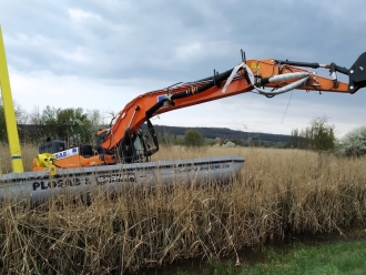 Projekt v mokřadech Parížske močiare (Slovensko, květen 2025) byl ideální ukázkou schopností obojživelného stroje DEMU 225.